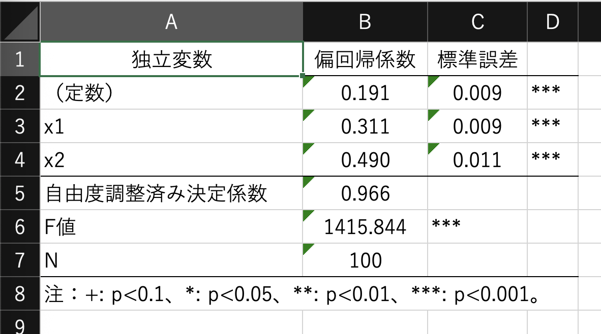 result$save('hoge.xlsx')- 回帰分析(以下をサポート)